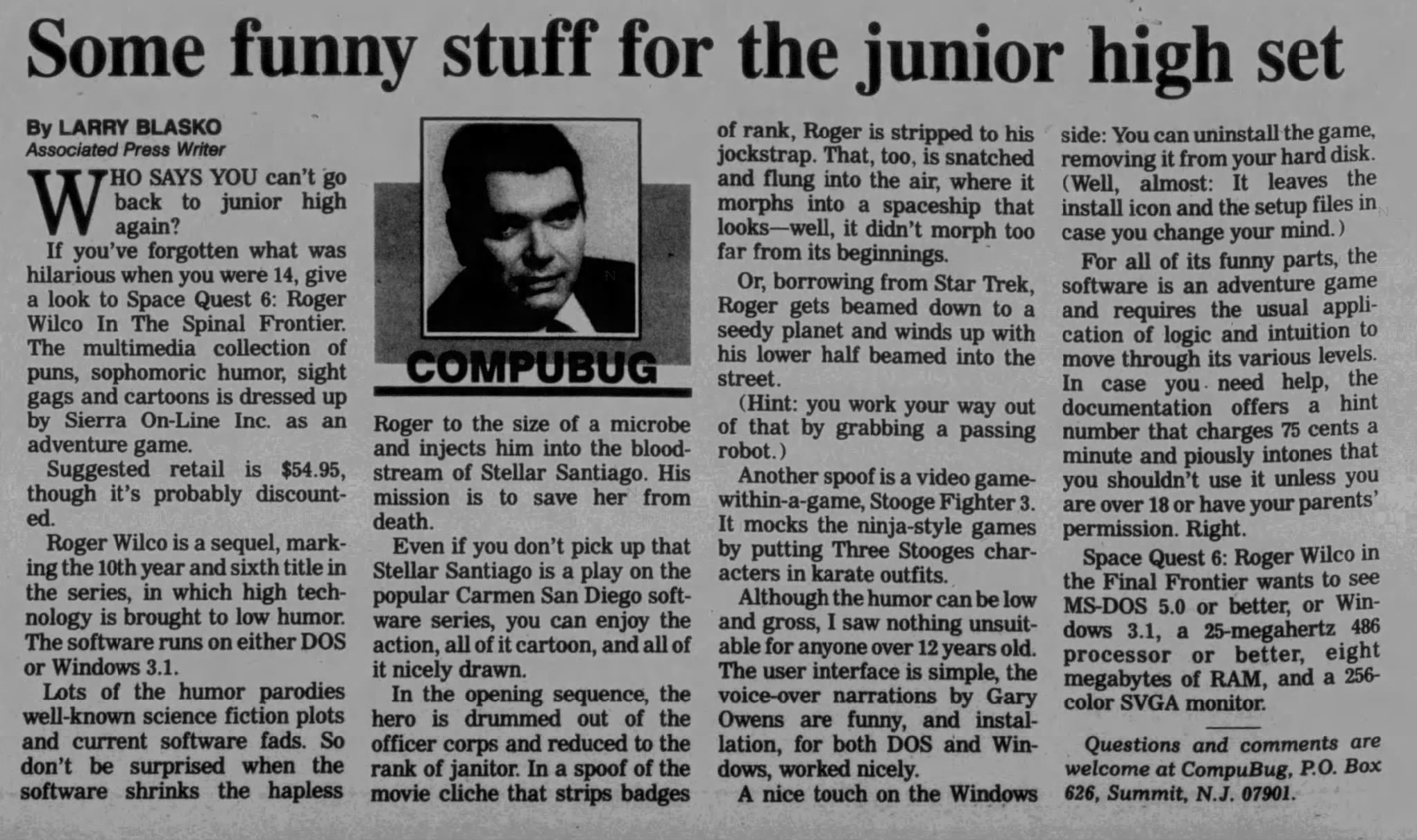 -  Bad News for Space Quest Fans: SQ5 Delayed (The Press, December 1992)