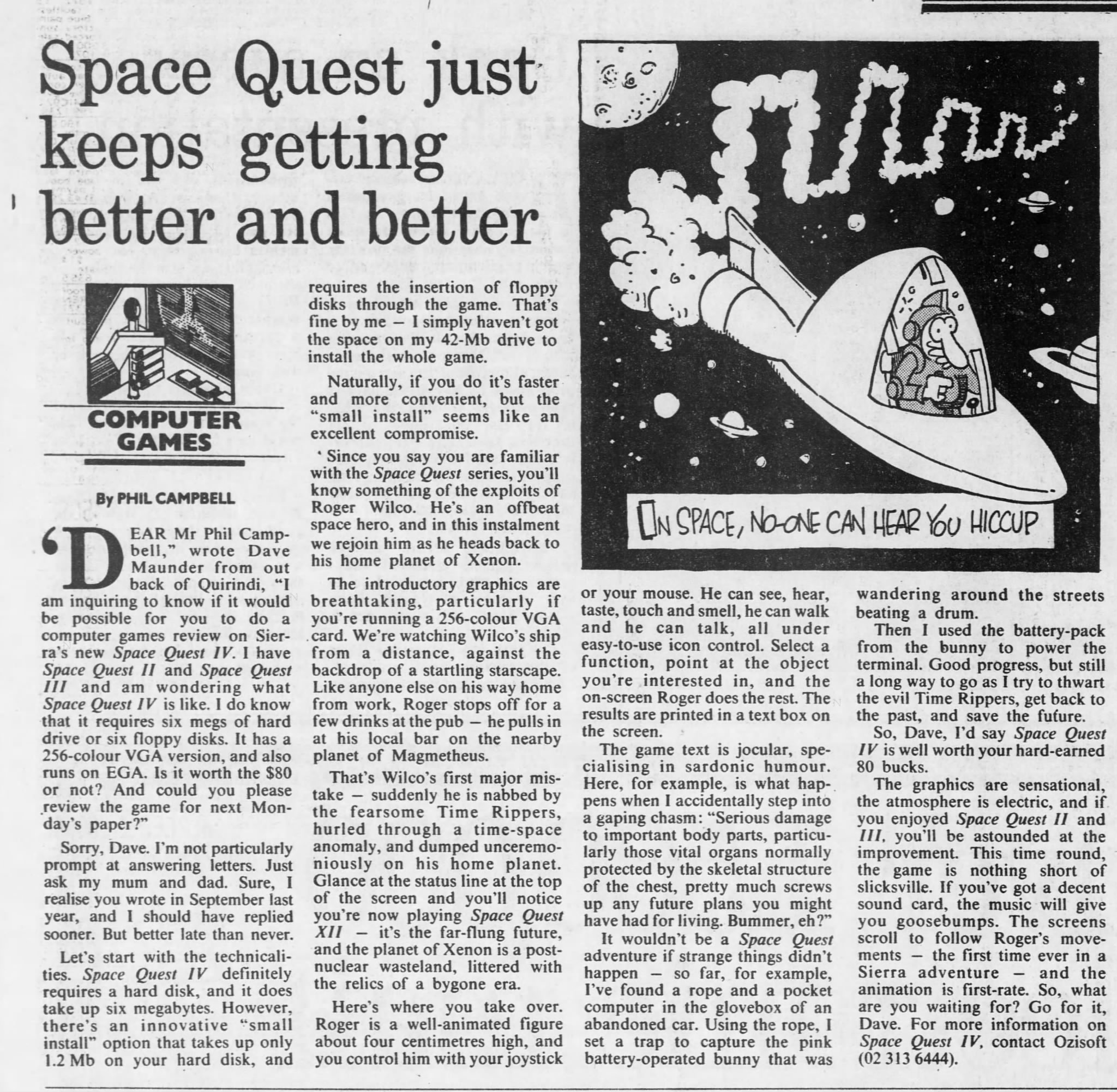 -  Space Quest IV (Sydney Morning Herald, March 1992)