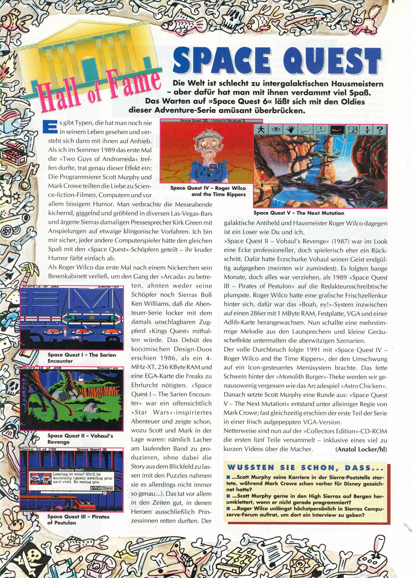 - Space Quest 6 Preview (PC Games, August/September 1995)