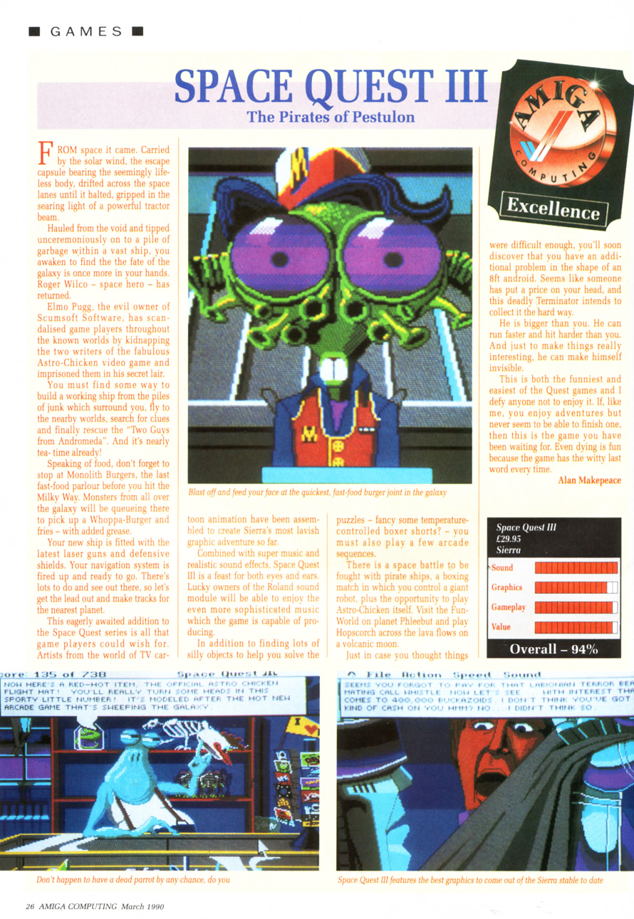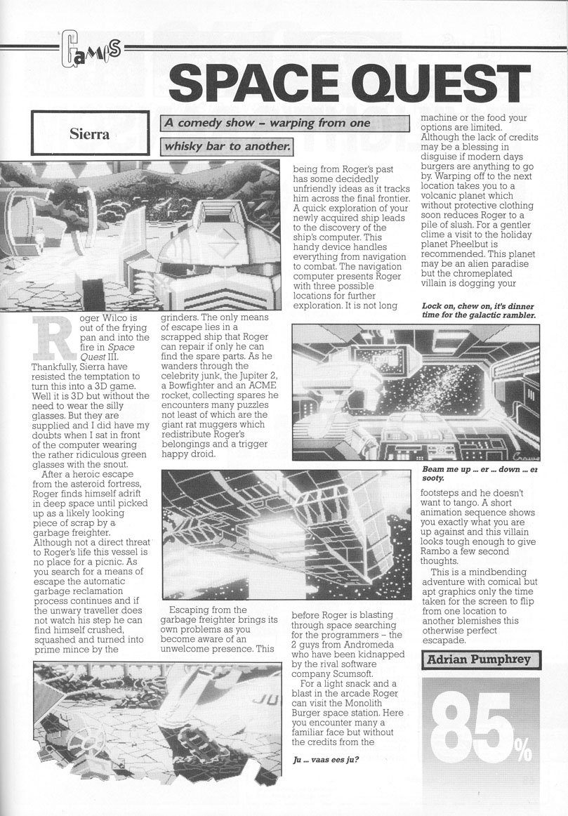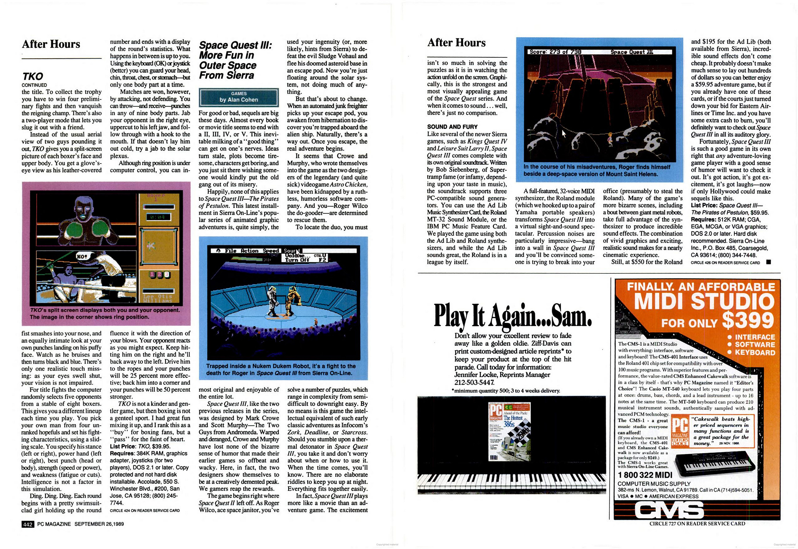 - Space Quest III (Game Player's PC Strategy Guide, July/August 1989)
