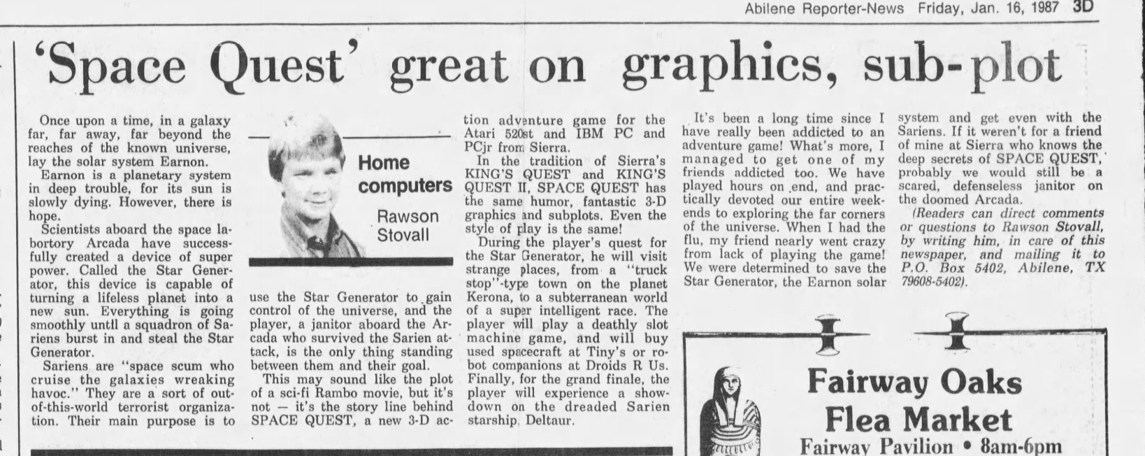 -  Space Quest I (Abilene Reporter-News, January 1987)