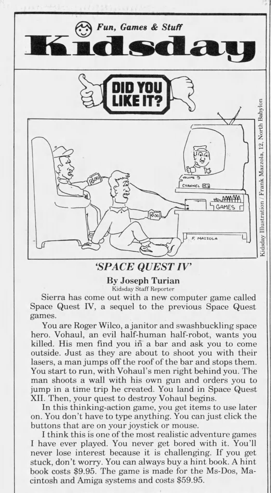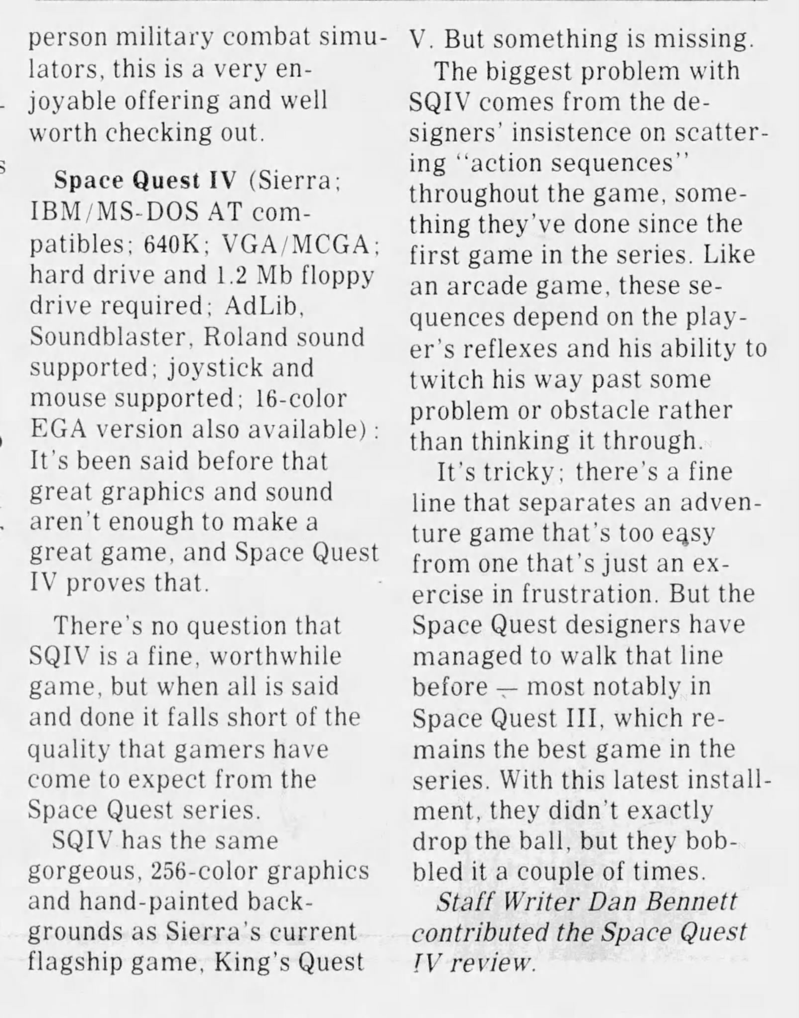 -  Space Quest IV (Newsday Suffolk, January 1992)