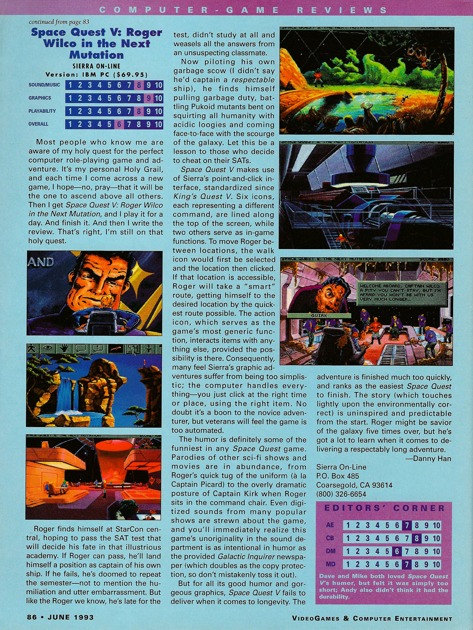 -  Space Quest V (Video Games & Computer Entertainment, June 1993)