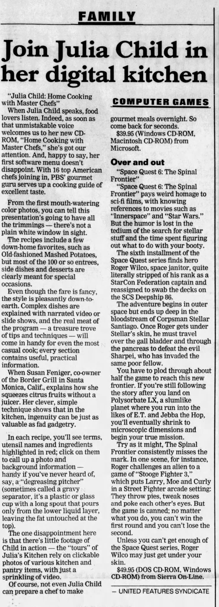 -  Space Quest 6 (The Free Lance-Star, September 1995)