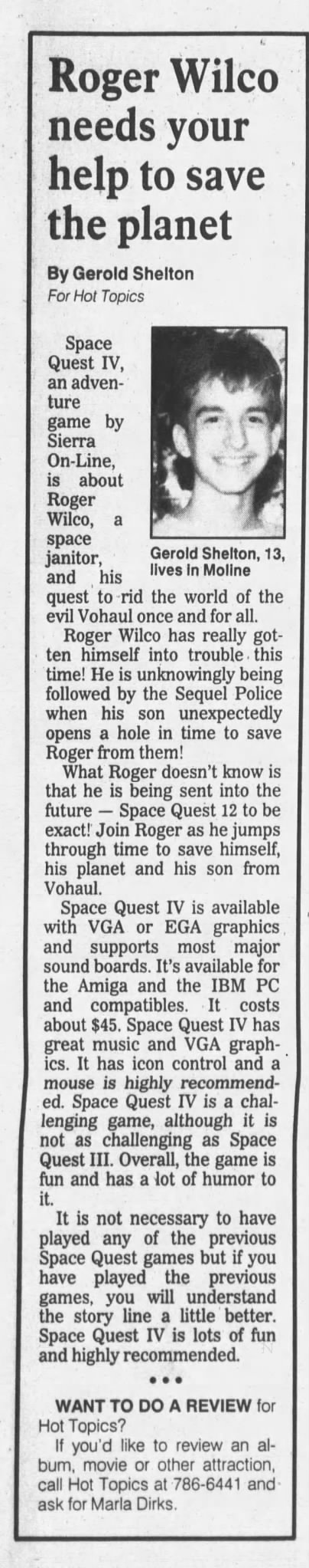-  Space Quest IV (Rock Island Argus, April 1992)