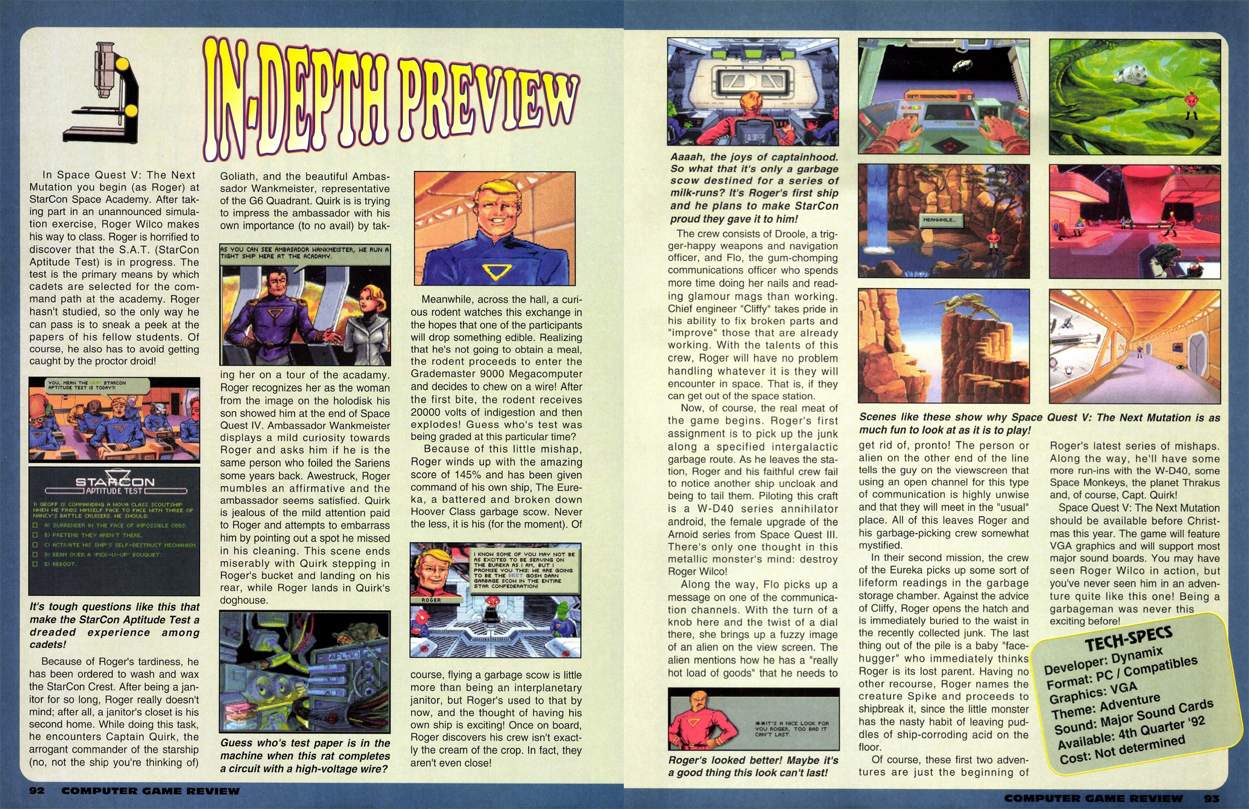 -  In-Depth Preview: Space Quest V (Computer Game Review, December 1992)