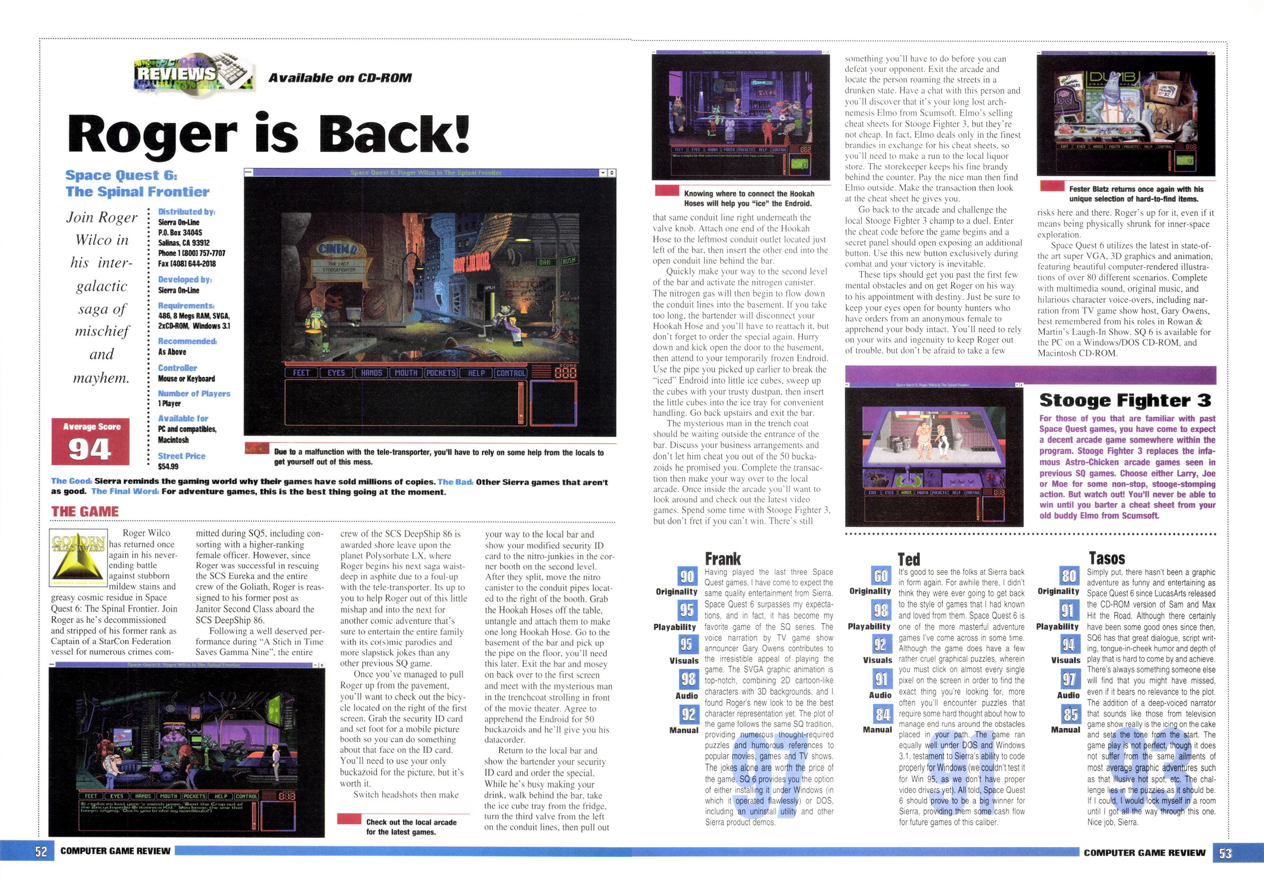 -  Space Quest 6 Hints & Tips (Computer Games Strategy Plus, November 1995)
