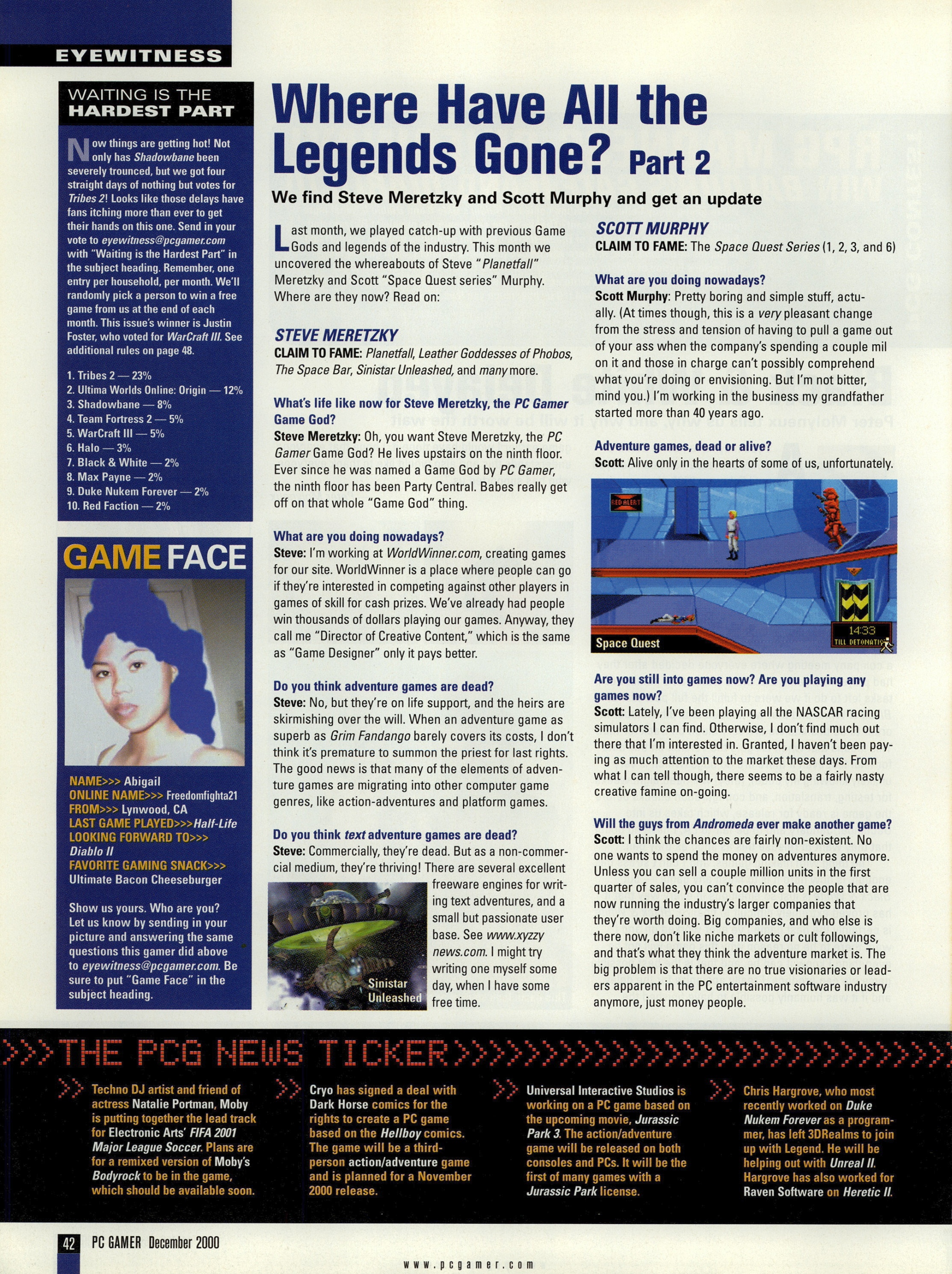 - Scott Murphy - Where Have All the Legends Gone? (PC Gamer, December 2000)