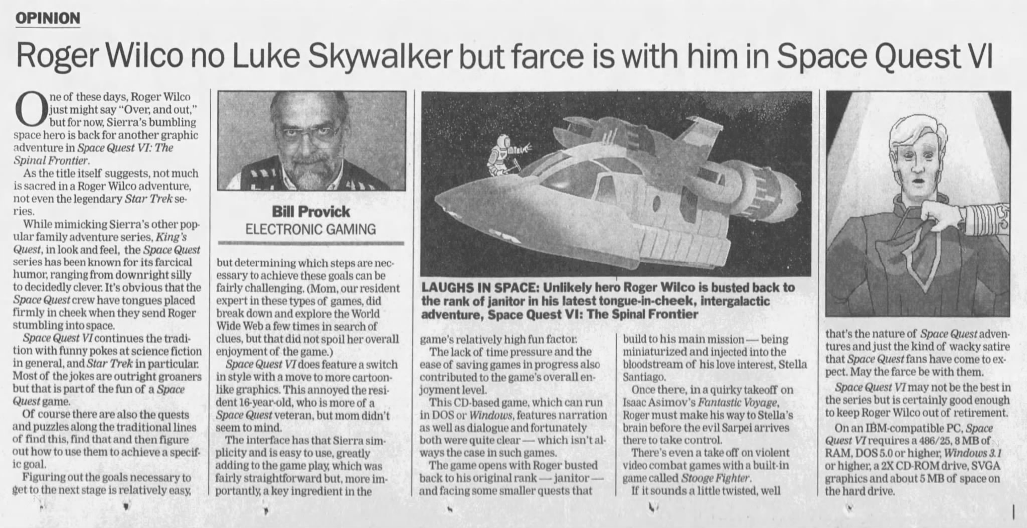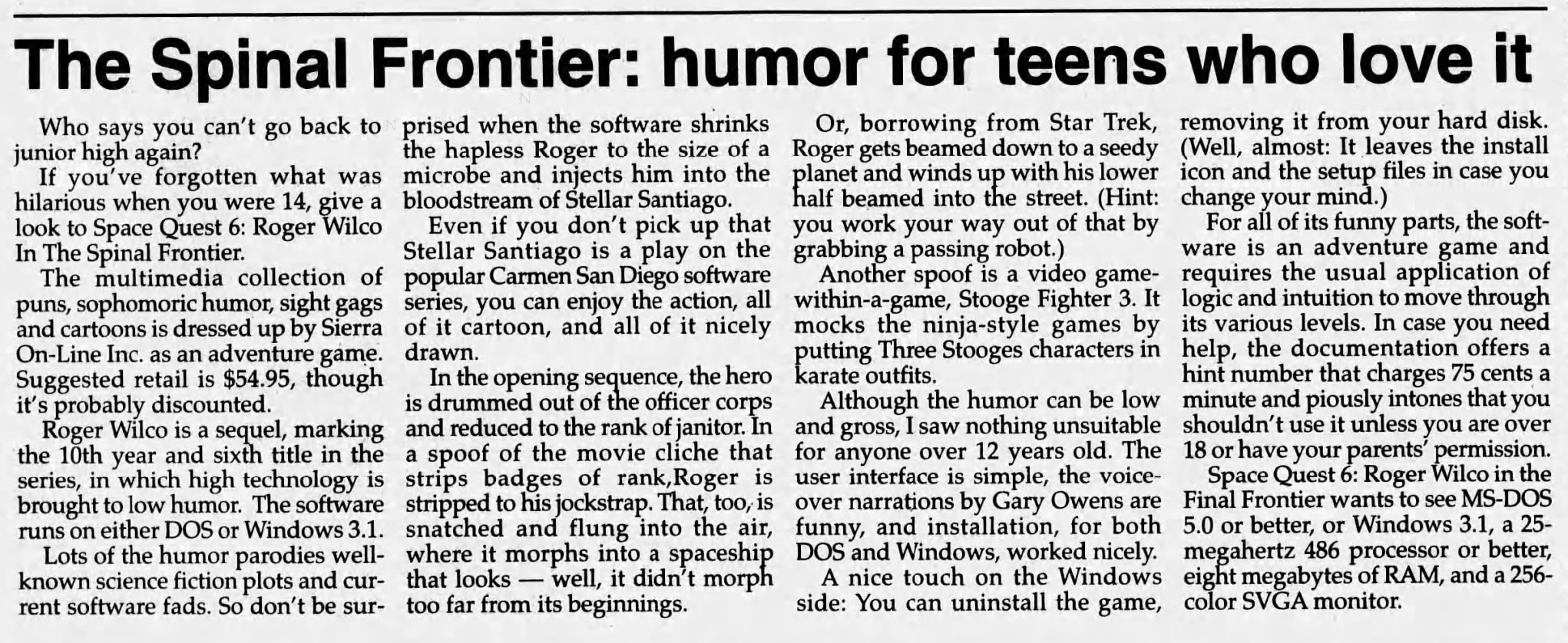 - Space Quest 6 (The Free Lance-Star, September 1995)