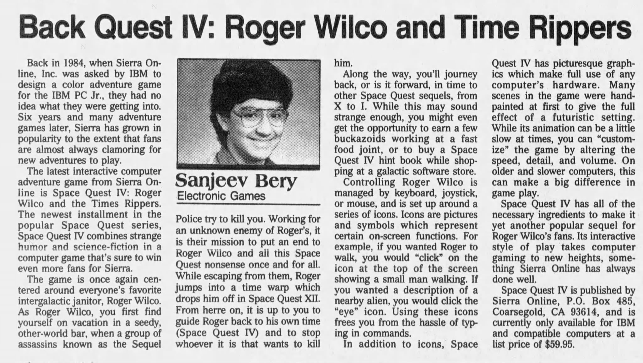 - Space Quest IV (Newsday Suffolk, January 1992)