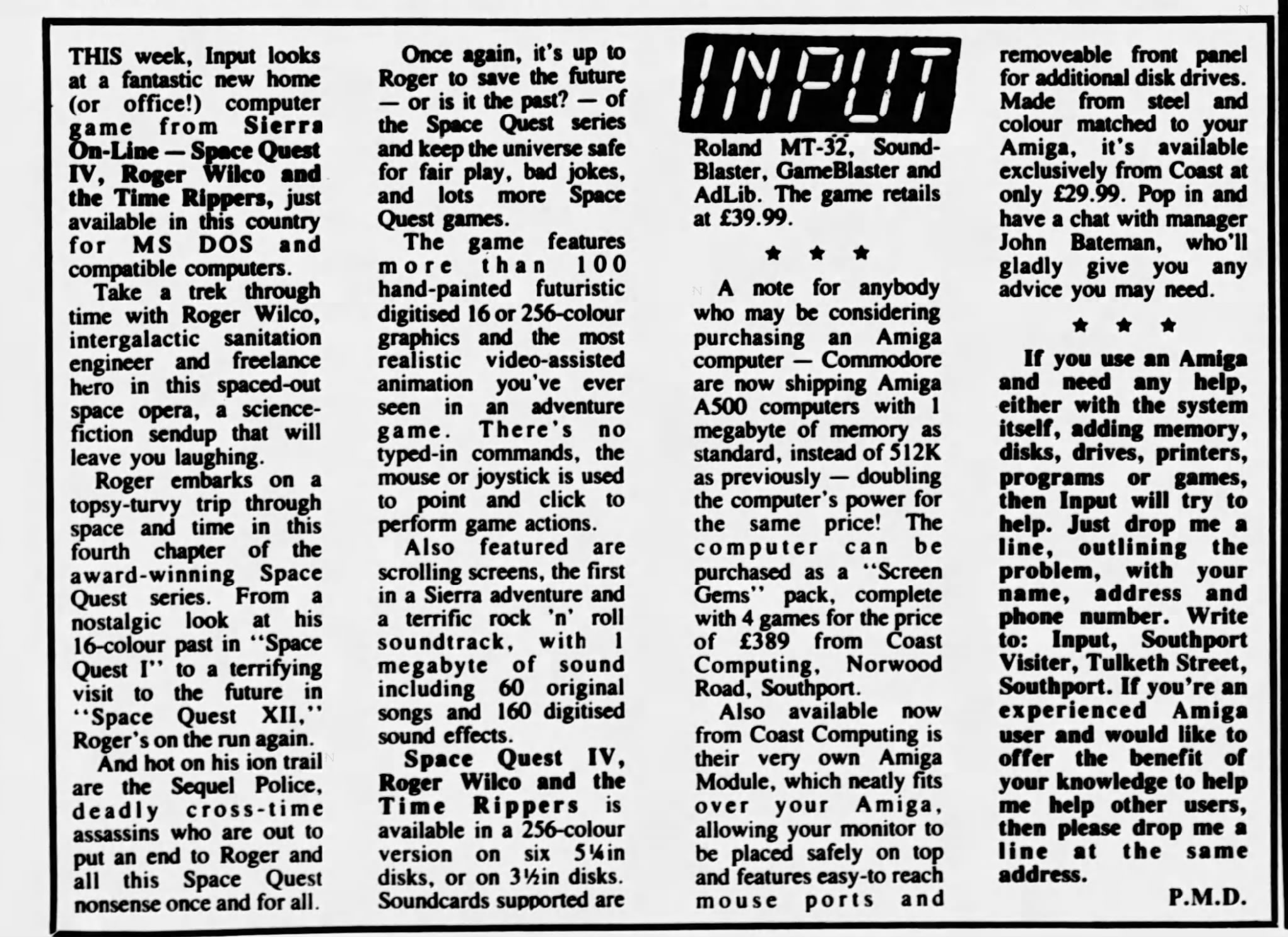 - Bad News for Space Quest Fans: SQ5 Delayed (The Press, December 1992)