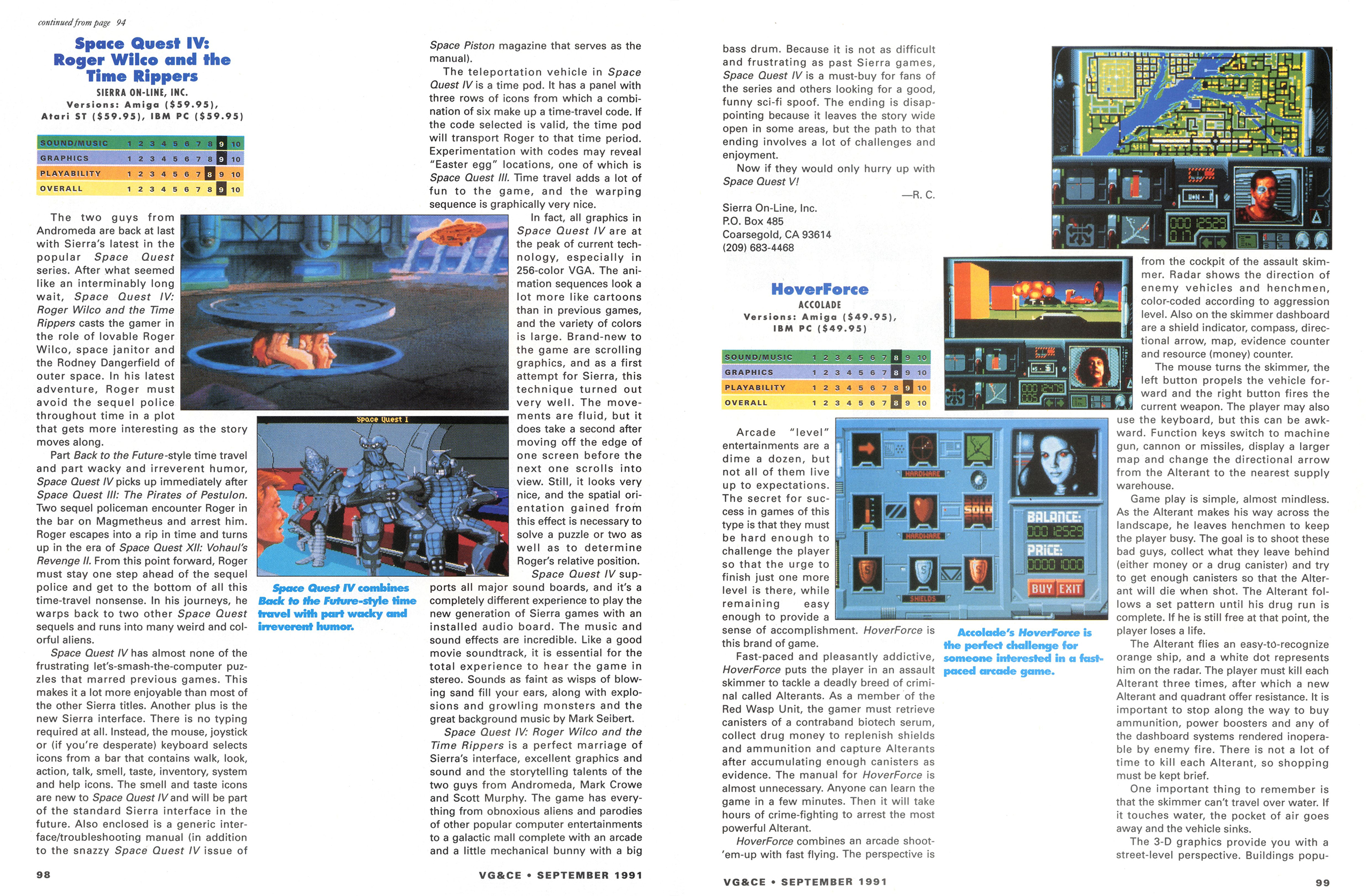 - Space Quest IV (Video Games & Computer Entertainment, September 1991)